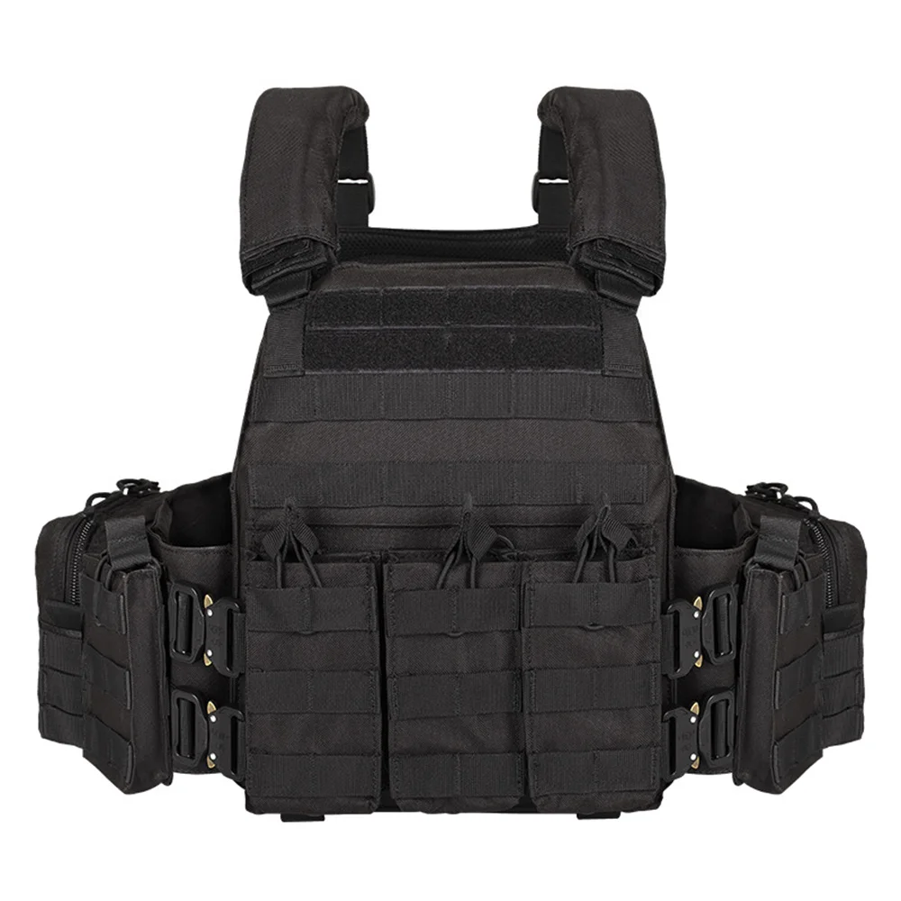 Ce gilet tactique est fabriqué à partir de matériaux de qualité tels que le nylon balistique résistant à l'usure et aux déchirures, ce gilet est conçu pour résister aux conditions les plus extrêmes. Il est doté d'une plaque de protection en polymère durable qui protège efficacement le torse contre les impacts et les projectiles. Le gilet tactique est entièrement réglable grâce à ses sangles et boucles robustes, ce qui permet à l'utilisateur de l'ajuster parfaitement à sa morphologie.